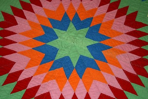 Rising star is one of many patchwork quilt blocks that fall under the umbrella of the evening star (also called sawtooth star) design. The star quilt took on the role of replacing the buffalo robe in ceremonial and religious life. This pattern has a long history, dating back to the colonial period where it was known as mosaic, honeycomb, or french bouquet. The star quilt patterns are no different, as they span back before the 19th century.